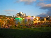 Das nördliche Spanien bietet dem Besucher eine abwechslungsreiche Mischung aus Meer, Bergen und anderem Zeug. Flugs den Anfang gemacht mit Bilbo, dem Nicht-Basken eher als Bilbao geläufig und Hauptstadt des Euskadi (Baskenlandes). Im Bestreben, den Ruf als Arbeiterstadt abzulegen und sich aufzumotzen, hat man sich das Guggenheim, bekanntes Kunstmuseum und seiner architektonischen Besonderheit weit über Euskadi ein Begriff, hinstellen lassen. Es besticht das Laienauge mittels lustig die Sonne reflektierender Dingers und macht so ordentlich was her. Für den ungetrübten Genuß des Inneren muß man geschaffen sein: Moderne Kunst wo man hinschaut. Große Namen wie Roy Lichtenstein bringen den Glanz in des Kenners Auge und wechselnde Ausstellungen ziehen die Massen an.